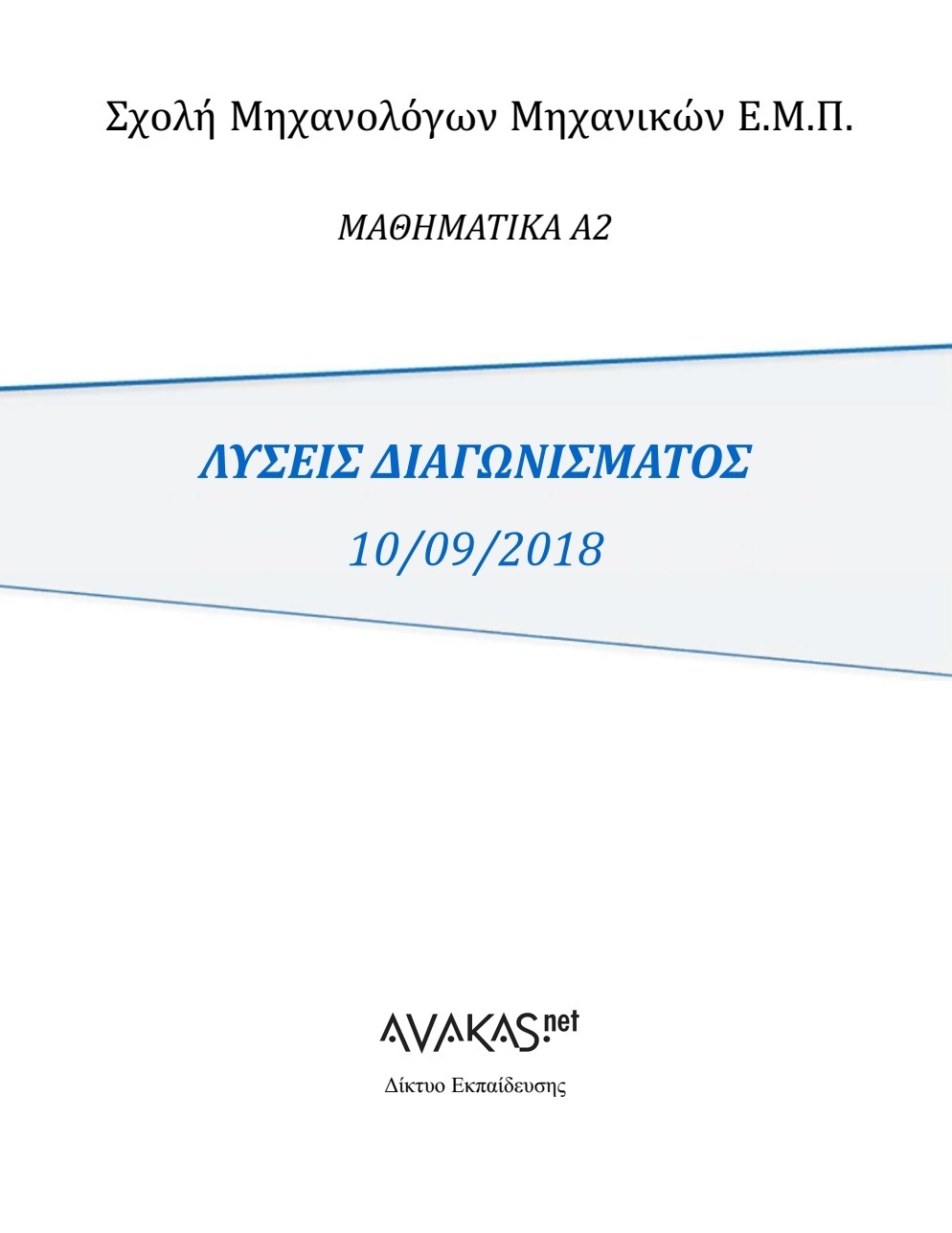 Λύσεις Διαγωνίσματος - Μαθηματικά Α2 - 10-09-2018