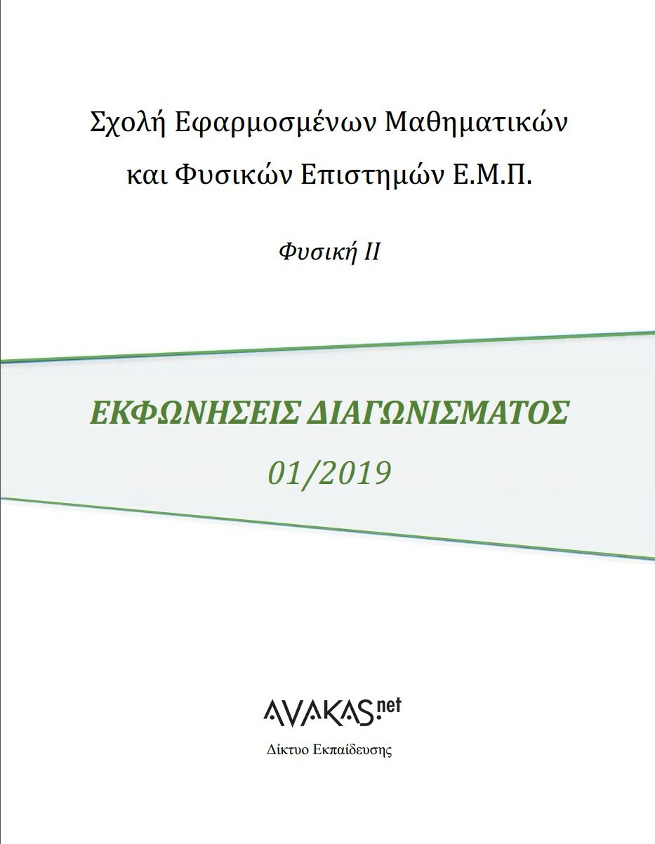Εκφωνήσεις για το διαγώνισμα του μαθήματος Φυσική 2 (Ηλεκτρομαγνητισμός) της επί πτυχίω εξεταστικής (01-2019) της Σχολής Εφαρμοσμένων Μαθηματικών και Φυσικών Επιστημών του Εθνικού Μετσόβιου Πολυτεχνείου.
