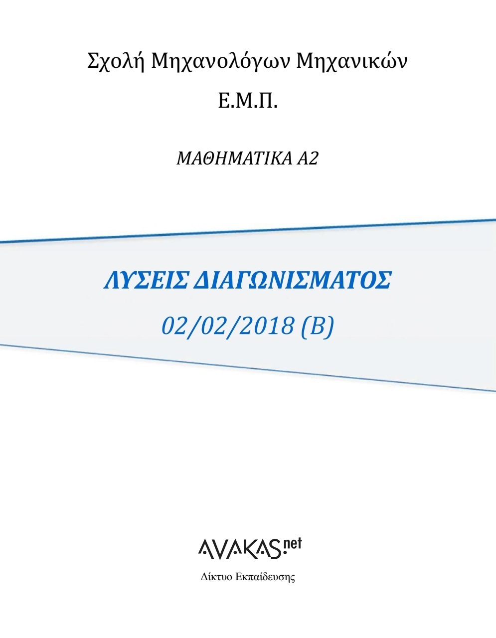 Λύσεις Διαγωνίσματος - Μαθηματικά Α2 - 02-02-2018_B