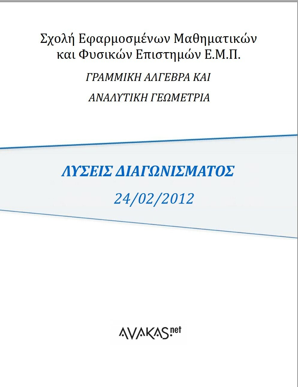 Λύσεις Διαγωνίσματος - Αναλυτική Γεωμετρία & Γραμμική Άλγεβρα - 24-02-2012